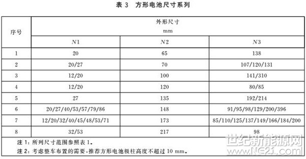 正式稿中,方形电池在宽度上依然给定8个尺寸,从65毫米到217毫米不等,其中70毫米、147毫米和173毫米宽的电池,标准在厚度和高度上均给予企业更多选择余地。