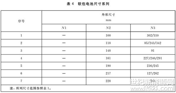 正式稿中,该标准将软包电池的宽度划定为7个尺寸,在此基础上,高度上给予了更大的选择空间。