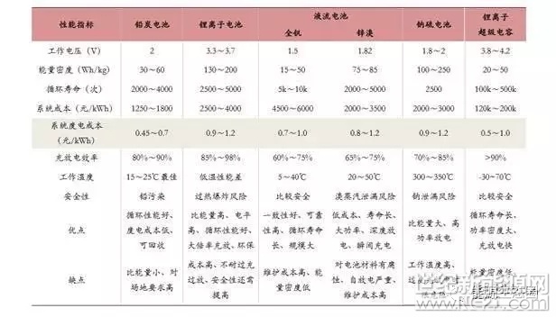 (主流储能电池性能指标比较 )