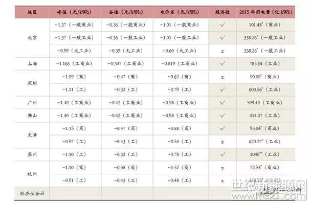 (部分地区电价差及用电量统计)