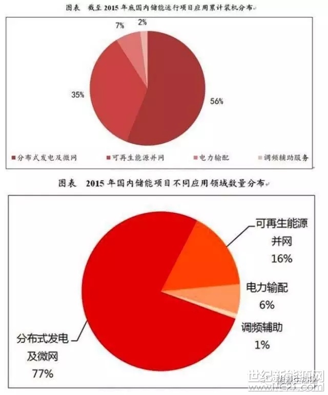 目前,国内的储能市场主要分为两类,一类是用户端分布式发电及微电网中储能的应用,占比大约为56%,另一类是集中式风光电站(可再生能源并网)储能应用,占比约为35%,目前两者累计装机规模已超过国内市场的90%,电力输配和调频辅助服务占到9%左右的市场份额。