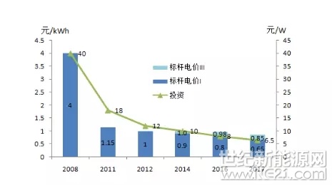 图1 光伏发电投资和标杆电价变化
