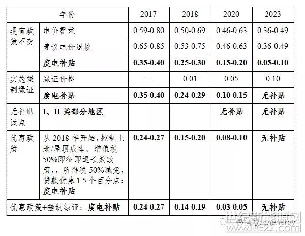 2020年新建项目度电补贴强度可以2017年基础上降低0.2元/千瓦时左右,达到0.15-0.20元/千瓦时,2023年度电补贴强度可以2020年基础上再降低0.1元/千瓦时左右,补度电贴强度普遍在0.1元/千瓦时以内。