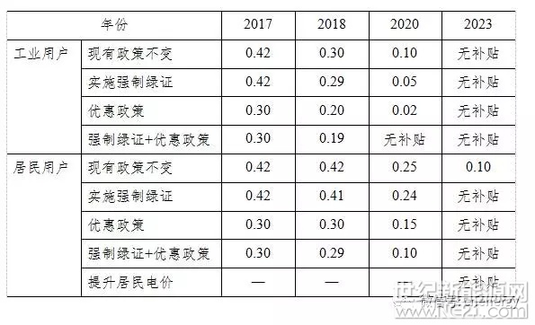如果2018年能够推出绿色证书强制交易,考虑利用三年左右的时间,通过适宜的政策设计,使绿色证书的价格达到0.05元/千瓦时左右,到2023年再达到0.1元/千瓦时左右,则预期2023年前光伏发电可以在上网侧实现全面平价。