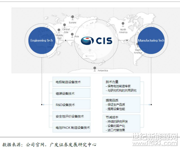 CIS成立于2002年的韩国公司。其主营业务为生产、销售锂离子电池制造设备、燃料电池制造设备、太阳能电池制造设备以及显示器制造设备。CIS公司是锂电设备的集大成者,生产从极片制作、电池单元(电芯)制作和电池组装各个工段所需要的各种设备,并且在技术上具备一定的优势。2015年6月,浩能科技与CIS合资创办了智慧易德,并将其打造成浩能科技和CIS进行技术和市场合作的中间业务平台。