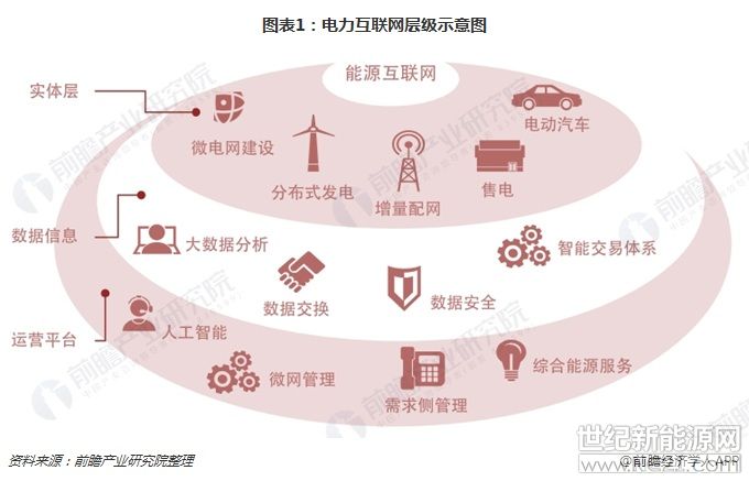 借鉴互联网理念,可将电力能源互联网分为三个层次,即实体层,数据信息层和运营平台层。在实体网层面,以电力网络为主体,涵盖电力能源的生产、传输、消费、储存和转换的整个产业链;在数据信息层面,将采用基于广泛传感器的物联网、大数据、云计算、人工智能等信息技术,为电力能源生产、传输、消费、储存和消费的整个产业链提供信息支撑;在运营平台层面,则运用互联网思维,以用户为中心,在整个能源链上提供运营增值业务以及解决方案,最终为产业链实体各个企业提高效率,增加收益服务。