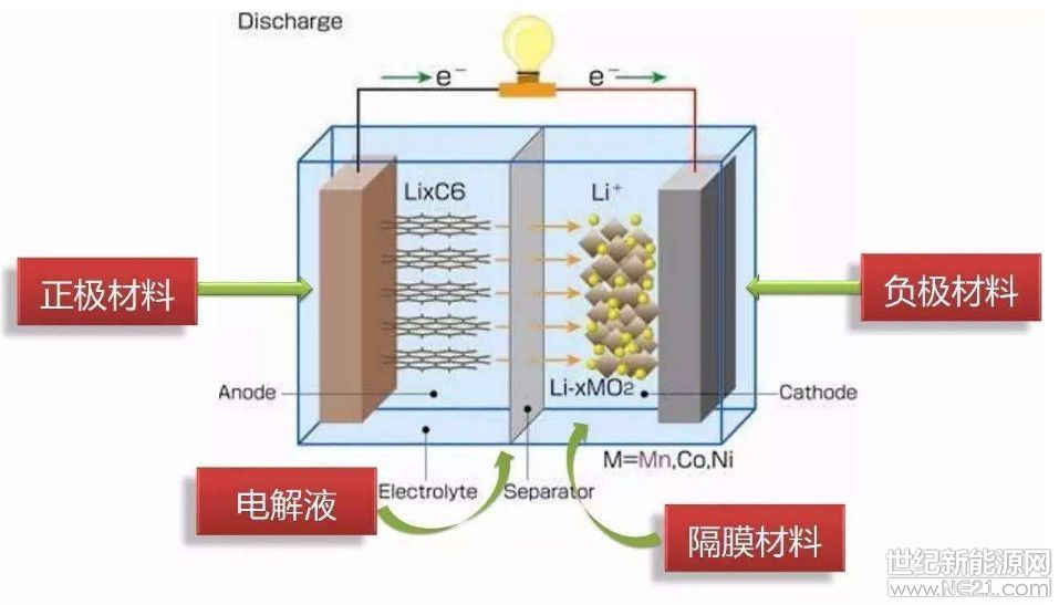 电池的四个部件非常关键:正极(放电为阴极),负极(放电为阳极),电解质,膈膜。正负极是发生化学反应的地方,重要地位可以理解。但是电解质有啥么用处?做功还很占重量。