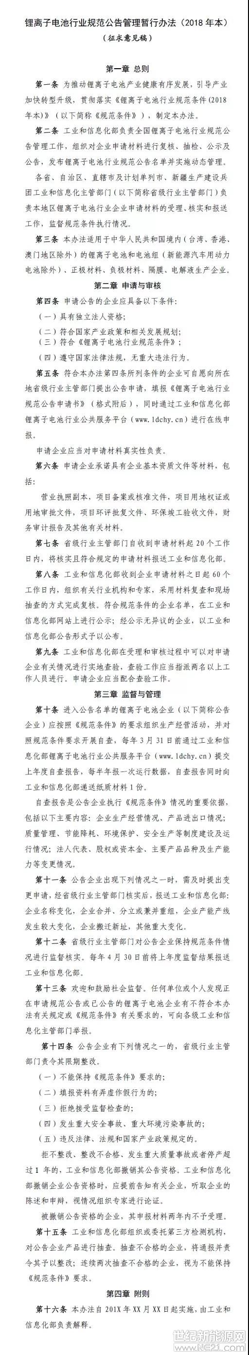 2.锂离子电池行业规范公告管理暂行办法(2018年本)(征求意见稿)