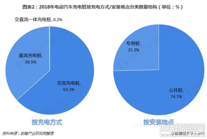 根据中国电动汽车充电基础设施促进联盟最新的统计数据显示,截至2018年底,可监测统计到的数据:按充电方式划分,2018年我国交流充电桩达到18981台。占比为63.3%;直流充电桩为109393台,占比36.5%;交直流一体充电桩545台,占比0.2%。而按安装地点划分,2018年我国公共充电桩达到18981台。占比为74.7%;专业充电桩为75876台,占比25.3%。