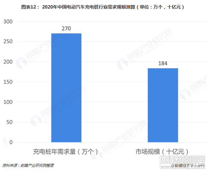 按照《节能与新能源汽车产业发展规划2012-2020年)》,2020年我国新能源汽车的生产能力达到200万辆,产销量累计超过500万辆,以国家电网充电桩招标价格(直流充电桩10万元/个;交流充电桩1.8万元/个)及电动汽车和充电桩配置比例(直流充电桩按照3:1配置,交流按照5:1配置)来测算的话,前瞻分析预测2020年我国充电桩年需求量将达到270万个左右,充电桩的市场将会超过1840亿元。