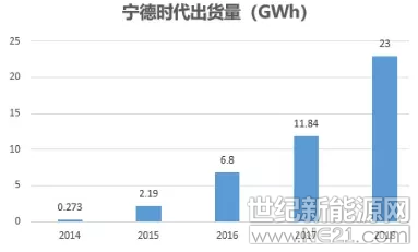 过去几年宁德时代的产量高歌猛进:2016年,宁德时代在动力电池上的产能倍增,达到6.8GWh,仅次于自产自销的比亚迪。而到2017年,宁德时代则在市场份额上完成了对比亚迪的超越。2018年宁德时代和比亚迪都实现了增长,但宁德时代跑得更快,以23.52GWh的动力电池装机总电量拿下第一。