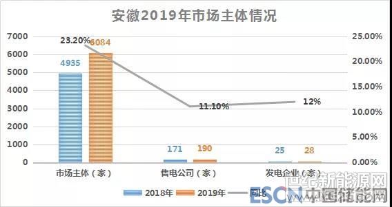 截止2019年2月,安徽电力市场准入的市场主体已增至6084家电力用户,其中包括190家售电公司和28家发电企业。与2018年的4935家电力用户、171家售电公司和25家发电企业相比,新增了电力用户1149家、新增售电公司21家、新增发电企业3家。市场主体总数量同比增长23%,售电公司数量同比增长11.1%,发电企业同比2017年增长12%。