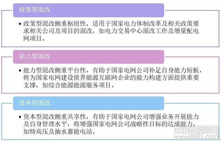 混改是国家电网公司建设“三型两网”打造世界一流能源互联网企业的有效手段。在其混改过程中将为大量不同属性的资本主体提供投资机会。政策性混改为符合政策门槛的资本方提供了参与机会;能力型混改为在国家电网公司转型业务方向纵向能力强的企业提供了大量机会;资本型混改则为实力雄厚的资本力量开展能源业务开放了机会。