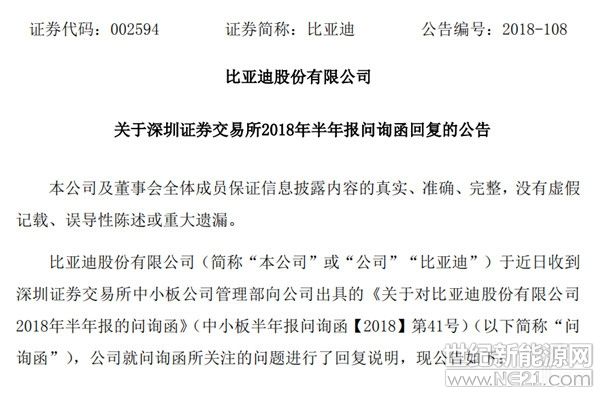 对于补贴依赖和净利润下降的问题,深交所曾针对比亚迪2018年上半年的财报数据,对比亚迪发出问询函:“上半年,你公司非经常性损益合计为115,229.8万元,占净利润比重为131.79%;计入当期损益的政府补助金额为89,449.8万元,占非经常性损益比重为77.63%。请说明你公司是否对政府补助等非经常性损益存在依赖,以及此种情形是否会对你公司的营利能力产生影响。”