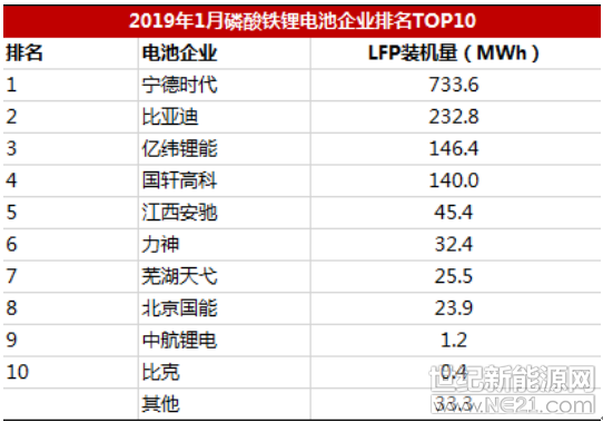 从1月最新的装机量来看,2019年1月我国新能源汽车动力电池装机总电量约4.98GWh,同比增长281%。其中,磷酸铁锂电池装机电量约1.42GWh,同比增长177%。