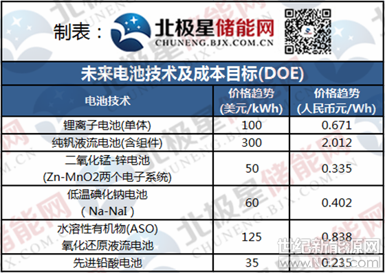 除此之外美国能源部也在考量其他新的储能技术,包括可与锂离子电池竞争的液流电池,其电池组(不含电子连接件等)的价格为300美元/kWh(2.012元/Wh)。