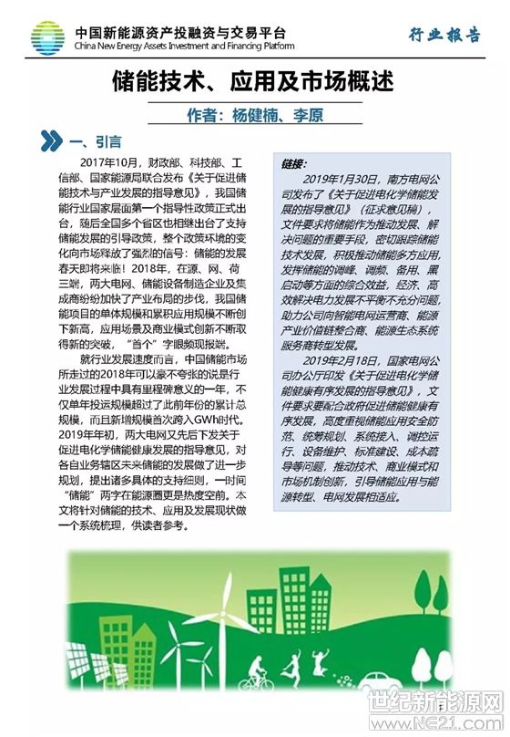 报告|储能技术、储能应用及储能市场概述