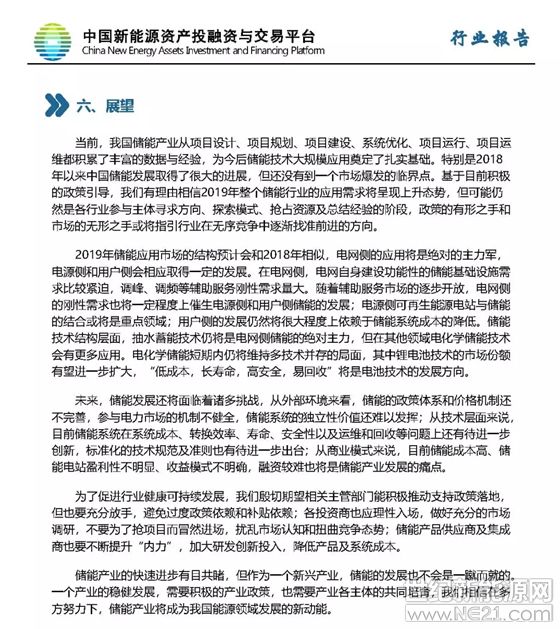 储能技术、储能应用、储能市场概述:2019年储能市场应用结构预计和2018年相似,电网侧储能的应用将是绝对的主宰,电化学储能短期内仍将维持多种技术并存的局面,其中锂电池技术的市场份额有望进一步扩大。