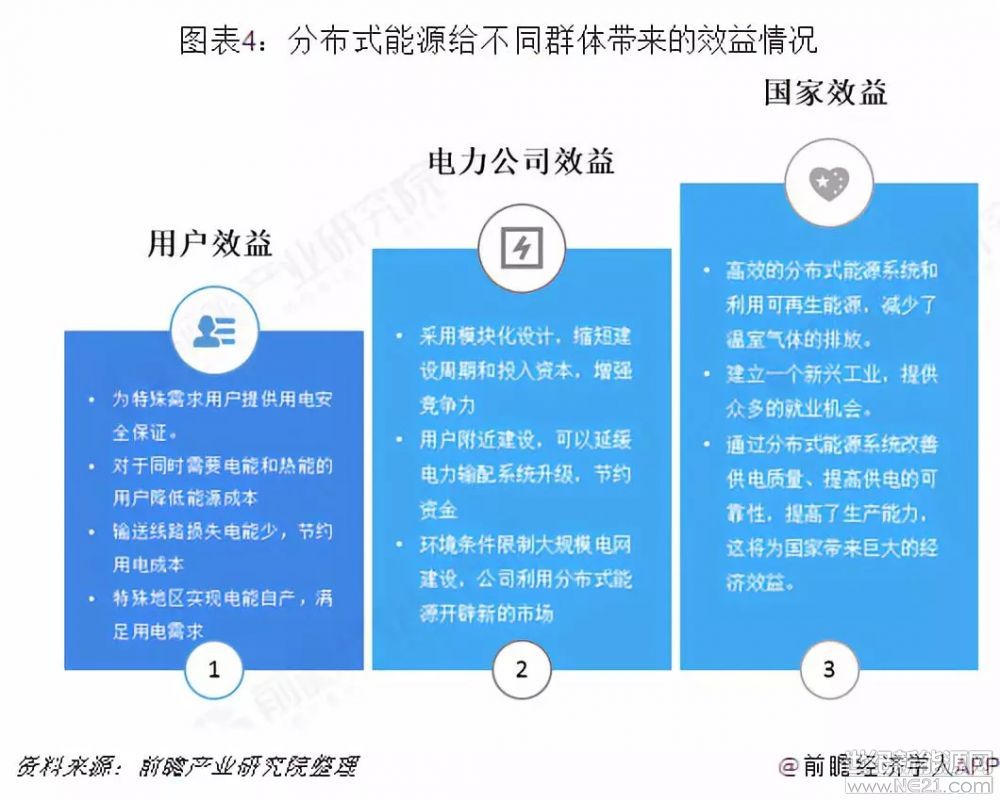 由于分布式能源相对于传统能源具备以上优点,可以分别给个人用户、企业用户、电力公司乃至于国家带来不同程度的效益,具有广阔的发展前景。