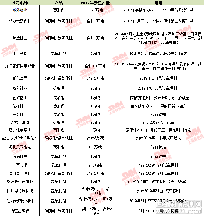 根据上表以及市场情况,我们预计2019年碳酸锂产量将增长2.8万吨,较2018年增长24%;氢氧化锂产量将增长1.9万吨,较2018年增长37.5%。