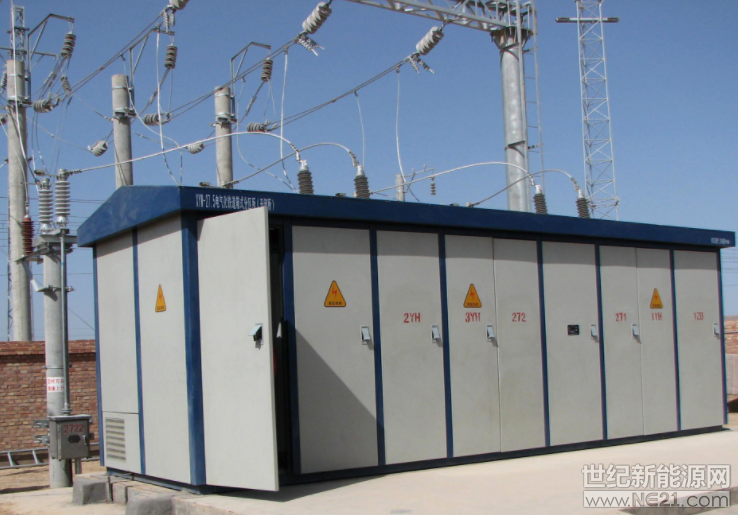 箱式变电站,又叫预装式变电所或预装式变电站。是一种高压开关设备、配电变压器和低压配电装置,按一定接线方案排成一体的工厂预制户内、户外紧凑式配电设备,即将变压器降压、低压配电等功能有机地组合在一起,安装在一个防潮、防锈、防尘、防鼠、防火、防盗、隔热、全封闭、可移动的钢结构箱,特别适用于城网建设与改造,是继土建变电站之后崛起的一种崭新的变电站。一般是把高压变成低压,例如把10kv的线路经变压器变成380v的工作用电压。箱式变电站适用于矿山、工厂企业、油气田和风力发电站,它替代了原有的土建配电房,配电站,成为新型的成套变配电装置。