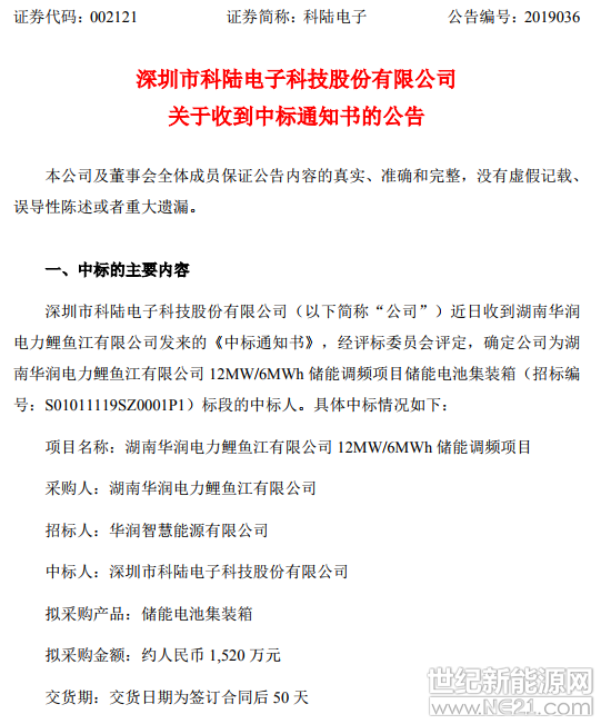 近日,科陆电子在公众平台表示,公司2018年中标AGC储能调频项目中标共计8个,已有7个项目均已交付或投运。