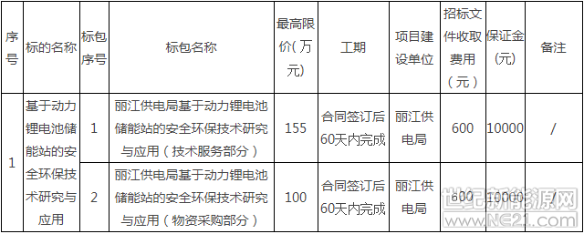 丽江供电局基于动力锂电池储能站的安全环保技术研究招标公告