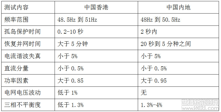 目前香港地区验收标准是《小型可再生能源系统与电网接驳的技术设计指引》,和内地的并网标准稍有不同,主要测试内容有: