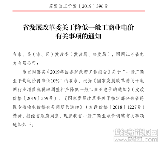 江苏一般工商业电价降低3.1分 最新峰谷电价差再一次缩小!