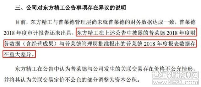 宁德时代在公告中指出:“东方精工公告的普莱德2018年度业绩不符合实际情况,对普莱德与公司关联交易公允性的判断不客观,将严重损害本公司及股东的利益。”