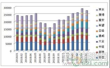 图2:2018年1月-2019年2月国内多晶硅分企业产量