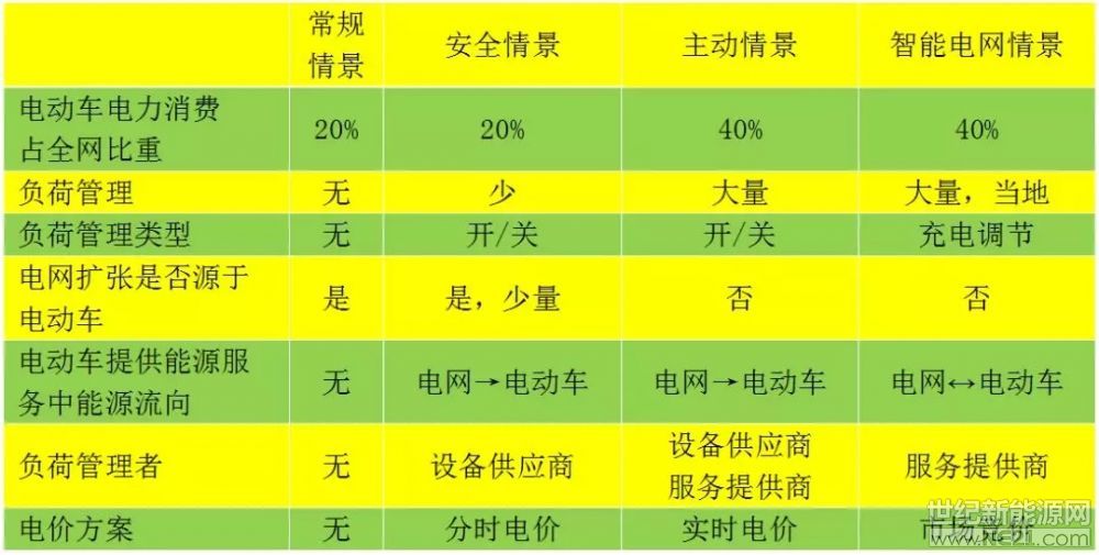 智能充电实施的不同阶段代表着电动车和电力系统一体化融合的不同层次。这些不同阶段包括:常规情景、安全情景、主动情景和智能电网情景阶段。从常规情景到智能电网情景,电动车消费电力占电力系统全部电力需求的比重在不断上升。常规情景和安全情景阶段,这个比重在20%左右,主动情景和智能电网情景阶段,这个比重在40%左右。