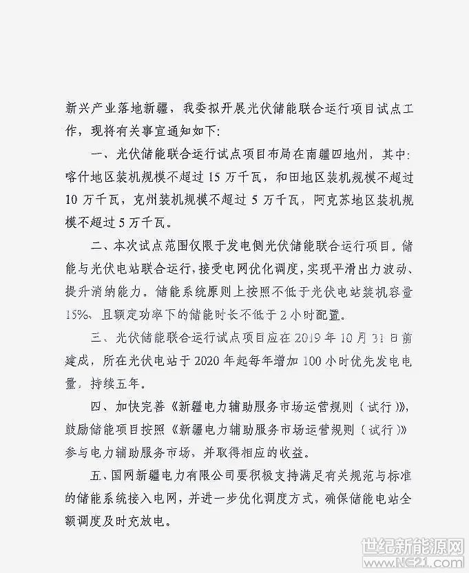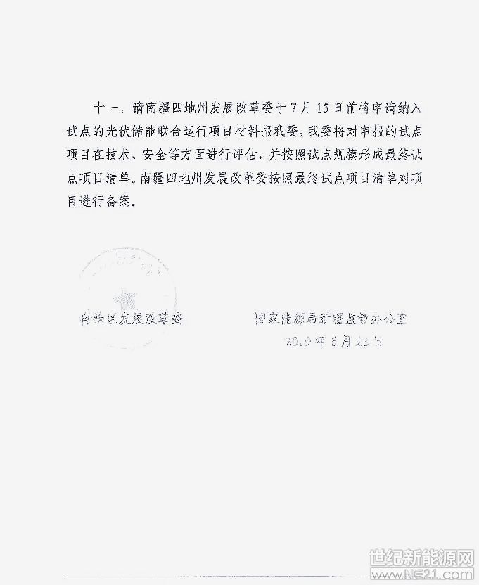 7.试点项目申报截至日期:7月15日前申请纳入试点的光伏储能联合运行项目材料报至新疆自治区发改委。