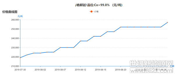 本月初,嘉能可宣布将于2021年以前暂停旗下位于刚果(金)的Mutanda矿生产。据了解,2018年Mutanda矿产钴2.73万吨,占全球供应链的20.8%,是当前全球最大的钴矿。Mutanda停产的消息极大地刺激了全球“钴”市,萎靡多时的钴价立即大幅反弹。截至8月29日,电解钴的价格已经达到257000元/吨,较8月6日Mutanda透露停产消息之前的价格225000元/吨,有了大幅上涨。同时,也间接带动了如赣锋锂业、盛屯矿业等在钴矿上有所布局的动力电池产业链企业股市上扬。