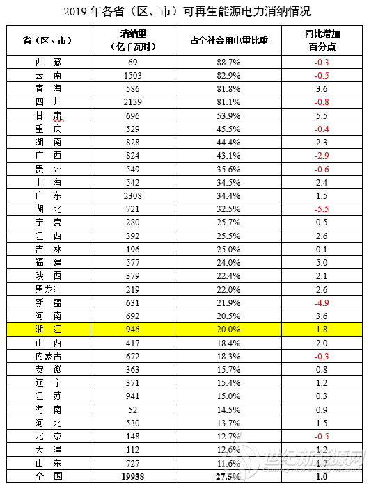 实现节能减排,大力发展可再生能源才是最大的倚靠。在这方面,浙江其实是落后的。在2019年全国可再生能源电力消纳所有省份排名中,浙江位居第21名。