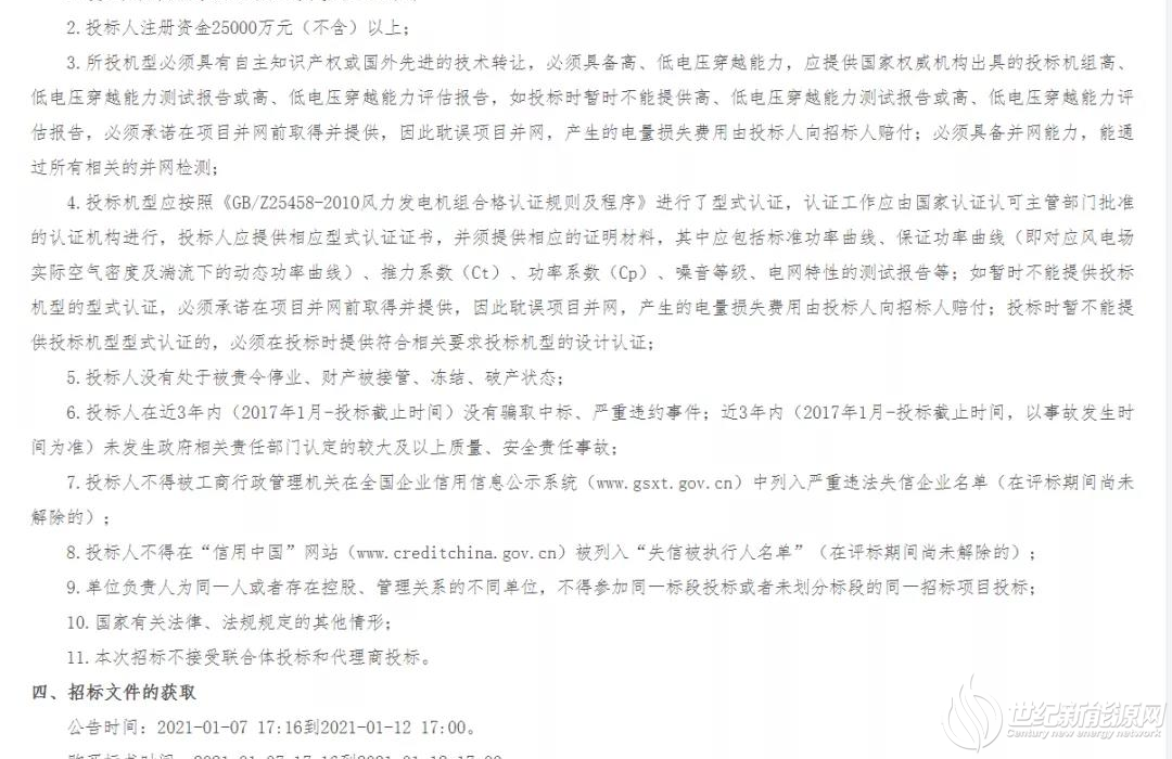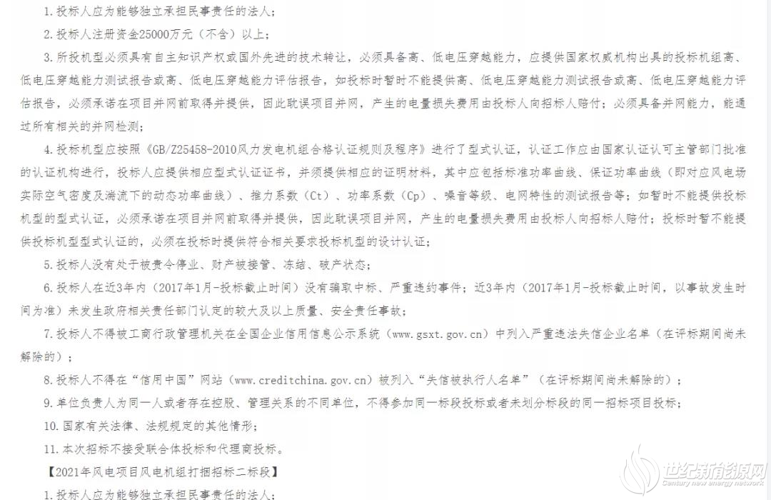 1月7日,华电集团发布2021年风电项目风电机组打捆招标公告,共25个风电项目,总装机1774.7MW。招标分成两个标段,其中,标段一包括10个风电项目,装机905MW;标段二根据采购范围是否含塔筒分为两部分:不含塔筒部分有8个项目,装机规模为630MW;含塔筒部分有7个项目,装机规模为239.7MW。公告原文如下:
