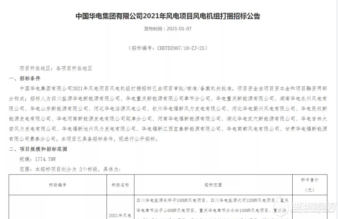 1774.7MW!华电集团25个风电项目风电机组打捆招标