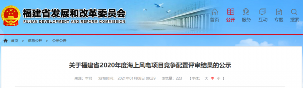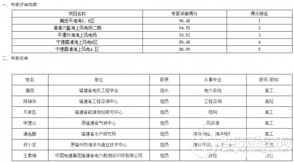 根据国家能源局有关规定和《福建省发展和改革委员会关于印发<福建省海上风电项目竞争配置办法(试行)>的通知》(闽发改能源〔2019〕767号)、《福建省发展和改革委员会关于印发福建省2020年海上风电竞争配置建设方案的通知》(闽发改能源〔2020〕717号),我委委托福建省能源规划研究中心完成了福建省2020年度海上风电项目竞争配置评审。现将评审结果及专家名单予以公示,公示时间为2021年1月8日-2021年1月14日(5个工作日)。公示期间如有异议,请以书面形式(署名加盖公章)向我委提出。