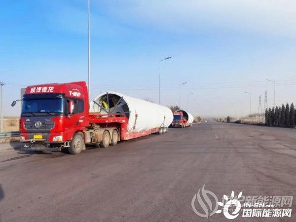 1月12日,由中国水电四局朔州基地承制的广灵县晨风能源有限公司广灵县晨风50兆瓦风电项目塔筒顺利完成发货任务。