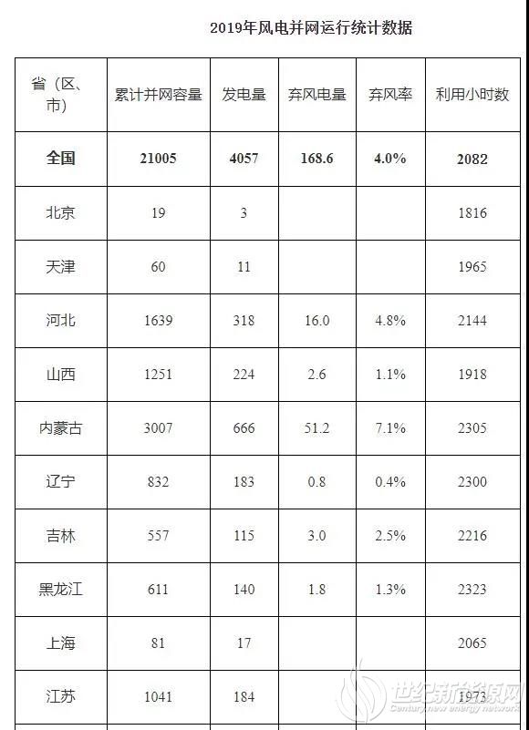 但是对于风力发电站来说,你并不是说一年365天,每天24个小时都在运行,比如2019年全国风电平均利用小时数为2082小时,另外平均弃电率达到4%。
