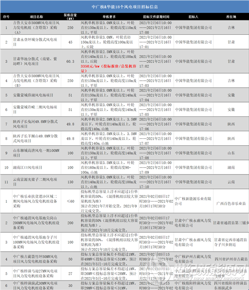 18个风电项目招标!首次限价:风机及附属设备(含塔筒)3350元/kW!