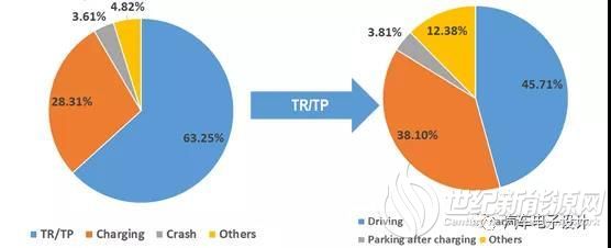 其实最让人担心的就是车辆本身没有碰撞或者受到异常的冲击情况下,在充放电混合场景的驾驶,热失控比例为45.71%,在充满电之后停放发生热失控的比例为41.91%。