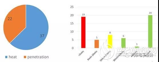 针对目前国内的认证实验情况,这部分是59个热失控测试结果统计(包括国内测试机构的19个国标强检测试和40个车企开发验证测试)。