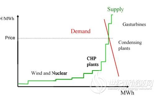 德州的电力市场是一个相当典型的“Energy only”的电力市场,也就是说,德州没有电力容量市场,即没有除了买电卖电的能量市场以外的机制去保证电厂建的足够多。在电力市场设计的问题上,“Energy-only” vs “Capacity market”一直是一个争议问题。根据电力市场供需曲线的关系(如下图),电力批发价格在需求高峰飙高。保证电力机组容量的充足性、建设足够多的电厂一直是个复杂的问题。电厂建设跟不上需求增长,电力机组容量过低,就很容易发生批发市场价格极高的问题,带来市场不确定的风险。在极端情况下,就会成为人道主义灾难。