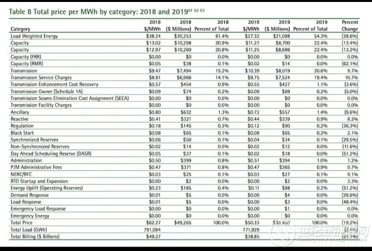 引入电力容量市场,就是希望保证发电容量足够,降低德州这种电价飙升的情况。但是电力容量市场不是免费的。容量市场相当于平时买了保险(保费也许很高)。比如在笔者现在所在的新泽西州(PJM电网)引入电力容量市场后,意味着每度电要增加$0.011-0.013的“容量费”(如下图电力价格分解中“Capacity”所示)。这并不是一个小数目。从一些国外电力容量市场的情况看,电力容量市场有些时候变成了老旧发电设备延续生命、以及浪费消费者金钱的一种方式。