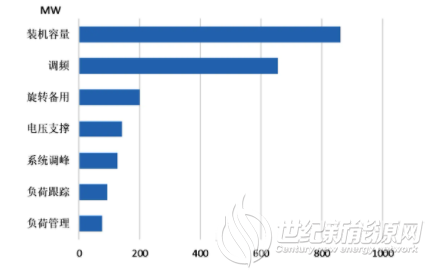 调频辅助服务市场是美国储能在电网中应用的最大市场。尽管841号法令要求各电力市场允许储能参与电能批发市场、辅助服务市场以及容量市场,但目前大部分市场中储能尚未正式参与电能批发市场,调频辅助服务市场仍是美国储能在电网中应用的最大市场。2018年,美国76%的电化学储能参与电力调频辅助服务。