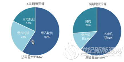 在市场收益驱动下,大规模储能积极参与PJM快速调频。下图展示了某年PJM调频市场总A类和D类调频资源容量及比例。可以看到,参与PJM调频市场的电化学储能占快速响应资源的26%。