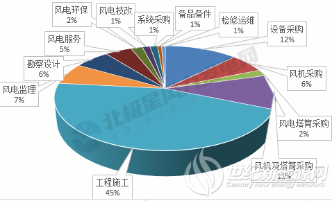 其中,设备采购类163个(风电机组采购31个,风电塔筒采购26个);工程施工类132个;勘察设计类13个;风电服务类11个;风电环保类9个;风电监理类8个;检修运维类1个。