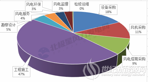 其中,设备采购类47个(风电机组采购9个,风电塔筒采购3个,风机及塔筒采购16个);工程施工类68个;风电监理类10个;勘察设计类9个;风电服务类7个;风电环保类3个;风电技改类2个;系统采购类2个;检修运维&备品备件类各1个。
