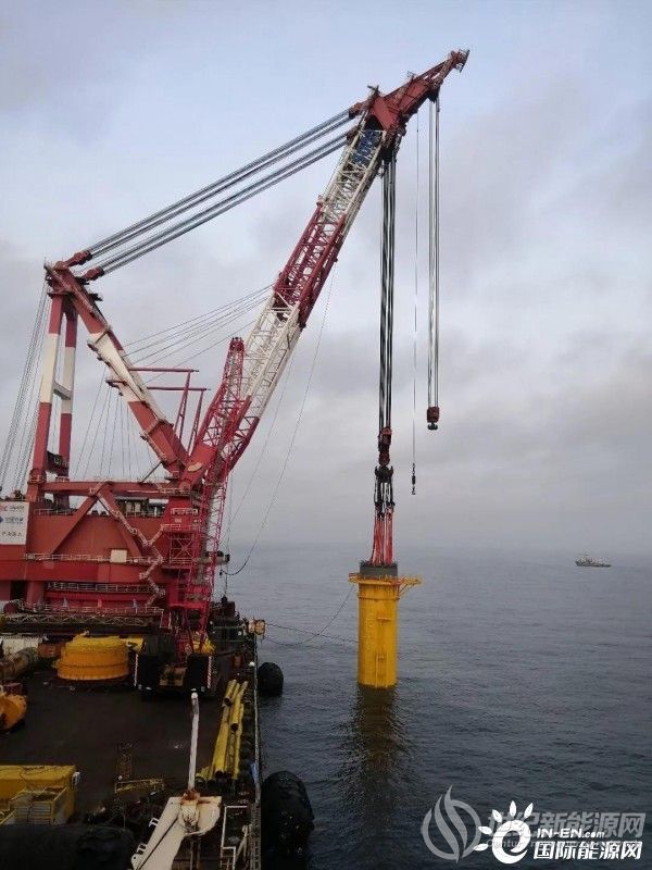 采用5000吨起重船“华西5000”和大型自航驳船“汇宗海”等大型船舶进行海上施工,并设计专用工装结构,精准控制吸力筒内外压差,保持水平度,在缓慢下沉过程中达到设计标高,首台施工,为了保障万无一失,整个施工过程放慢节奏,但两台基础全过程施工仅用40小时,全部负压下沉达到设计标高,最终水平度控制在千分之一以内。